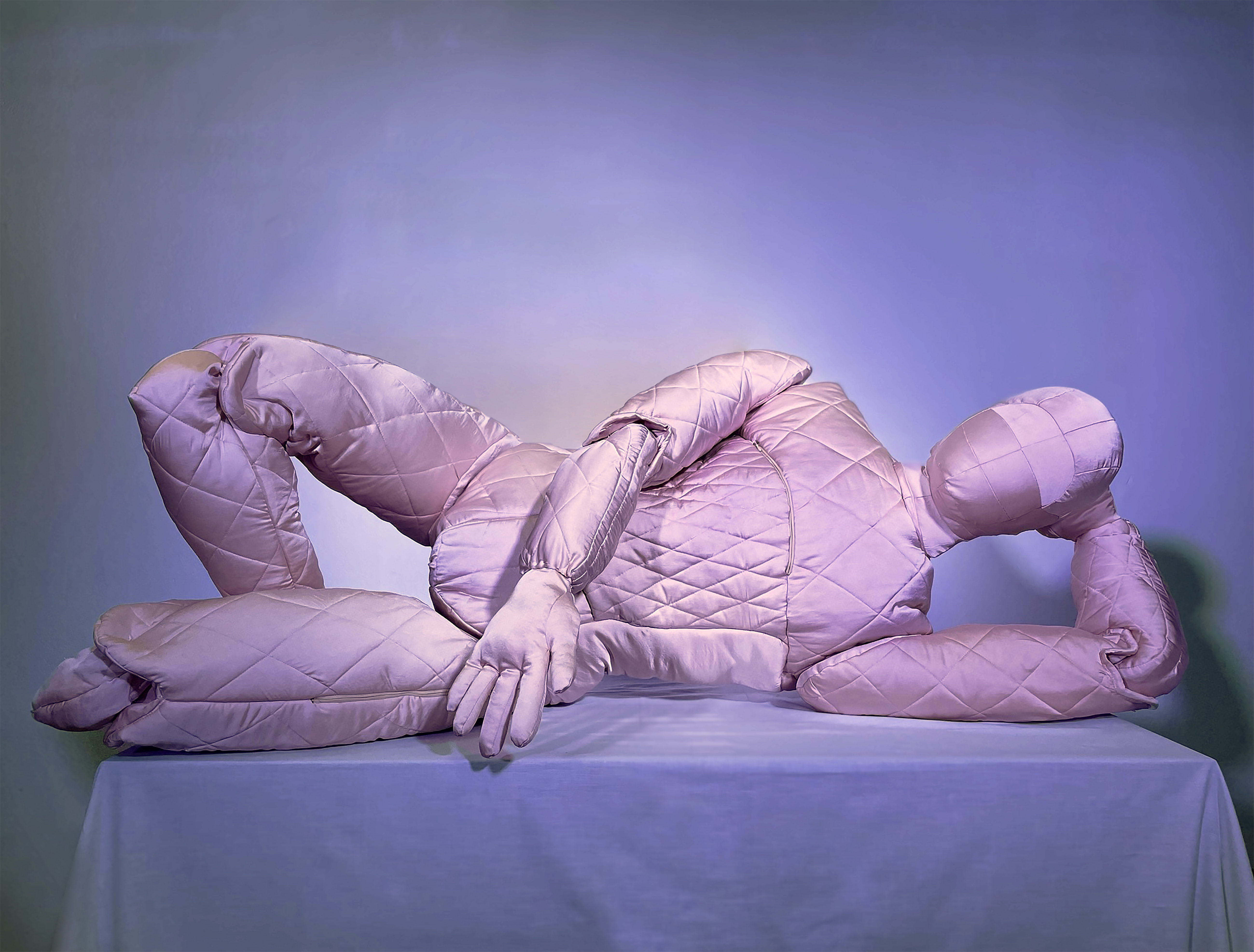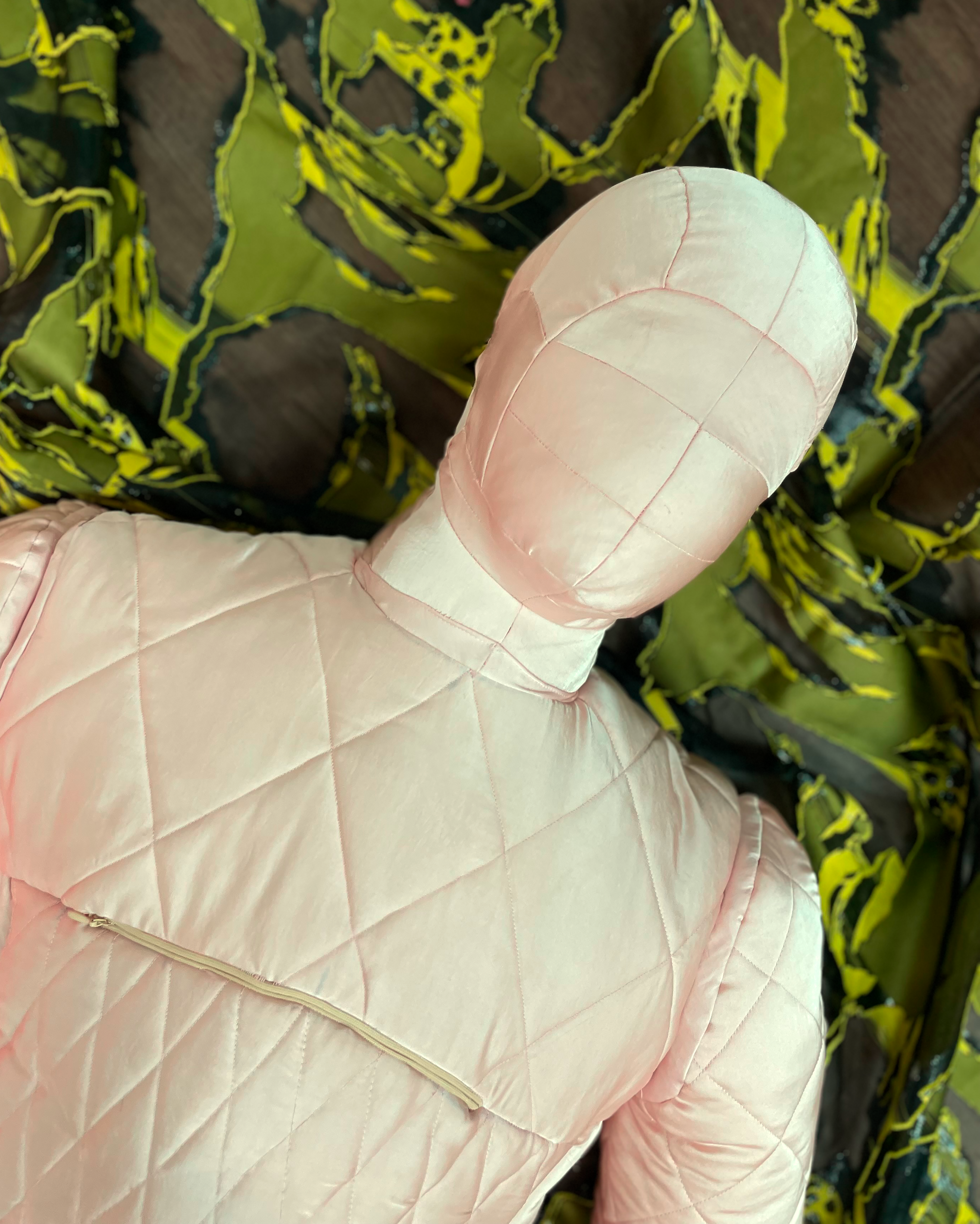 Softman 3000 draws its inspiration from 1950s appliance ad- vertisements, the fictional commercials in Almodóvar’s films, and, most significantly, the world of home textiles—a creative domain historically confined to women. Anca Petrei seeks to explore this field from a subversive and empowering perspec- tive. Through Softman 3000, she challenges conventional na- rratives and reclaims home textiles as a powerful medium for artistic experimentation.